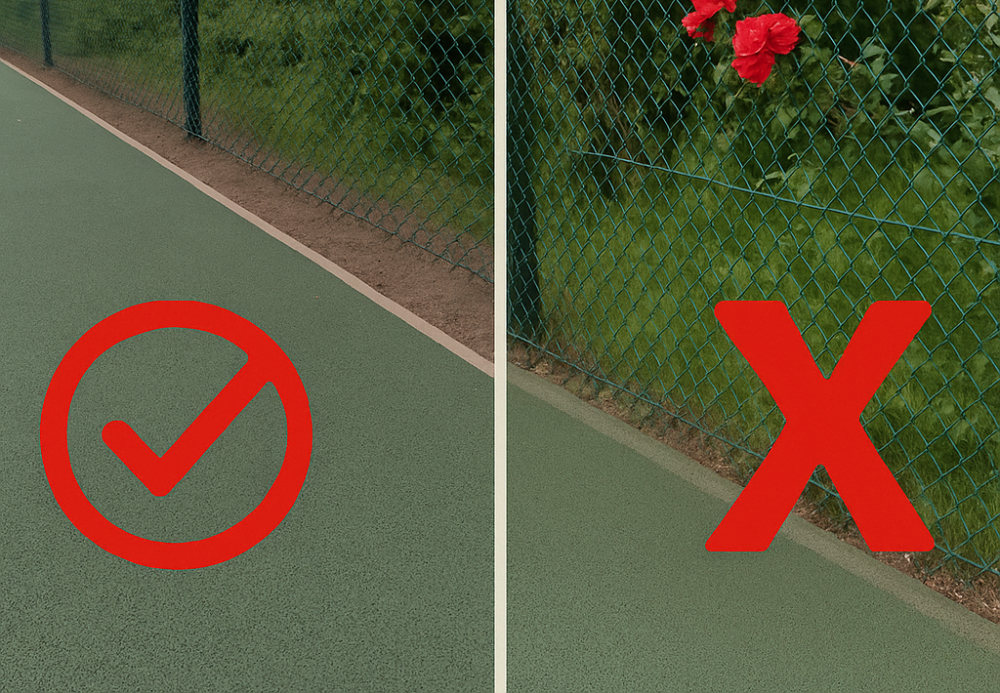 Proper edging is essential to protect your tennis court from weed growth, root intrusion, and fence damage.