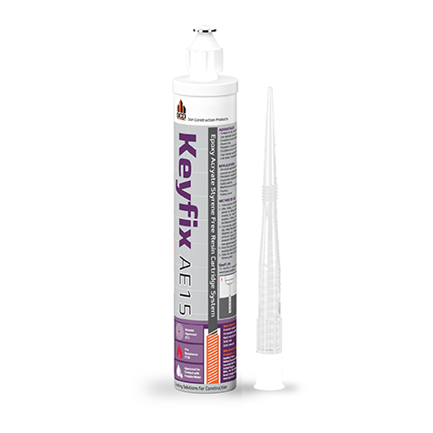 Keyfix AE15 is high strength, fast cure, styrene free, epoxy acrylate resin anchoring grout supplied in a pre-packed cartridge system.