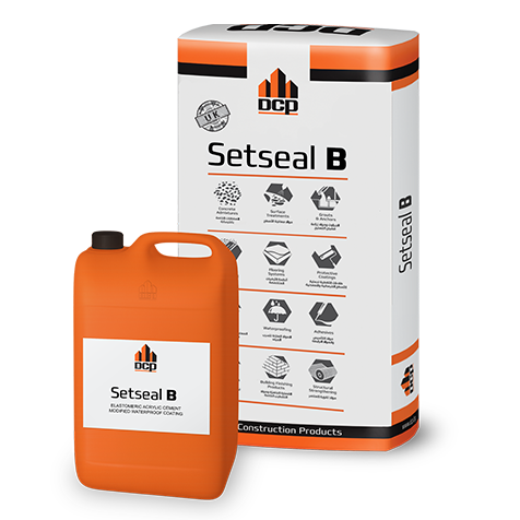 Setseal B is a two component; elastomeric polymer modified cementitious waterproof coating suitable for internal and external applications.