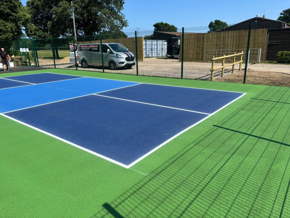 Finally, the surrounding areas were coated in Sports-Cote® Premium Standard Green. This finishing step framed the court with a professional and modern appearance, while also blending seamlessly with the natural outdoor environment of Ferndown Forest Golf Club.