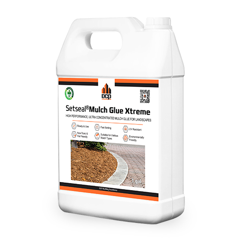 Setseal Mulch Glue Xtreme is a water-based emulsion, specifically designed to bind mulches and gravels, reduce